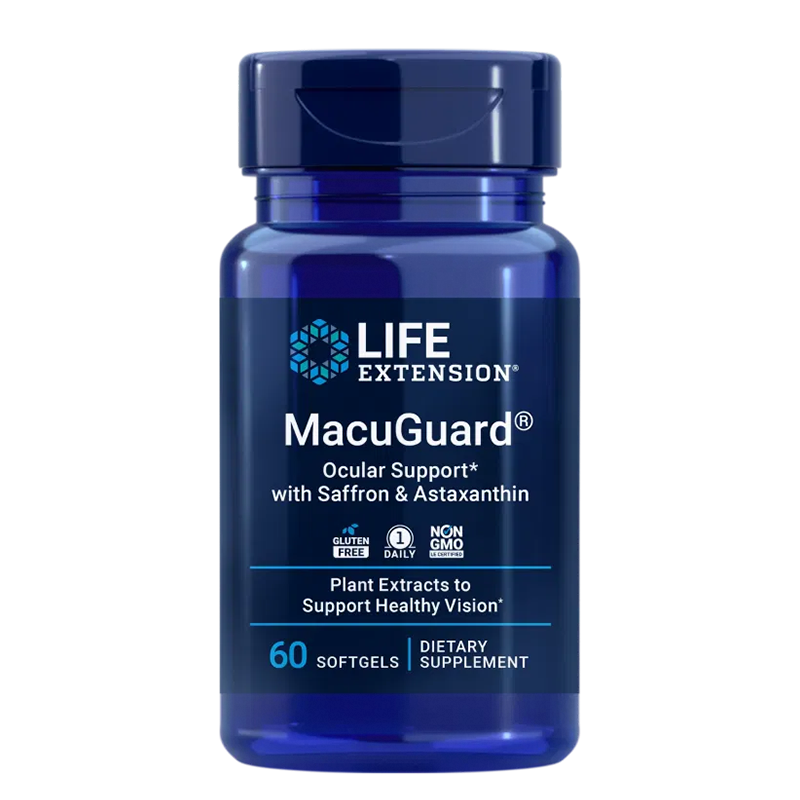 MacuGuard® В подкрепа на очното здраве (с невен, шафран и астаксантин), 60 софтгел капсули
